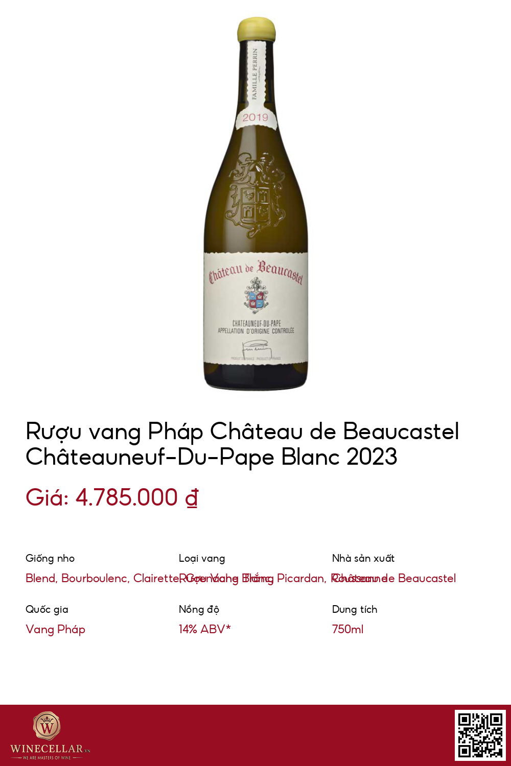 Rượu vang Pháp Château de Beaucastel Châteauneuf-Du-Pape Blanc 2023