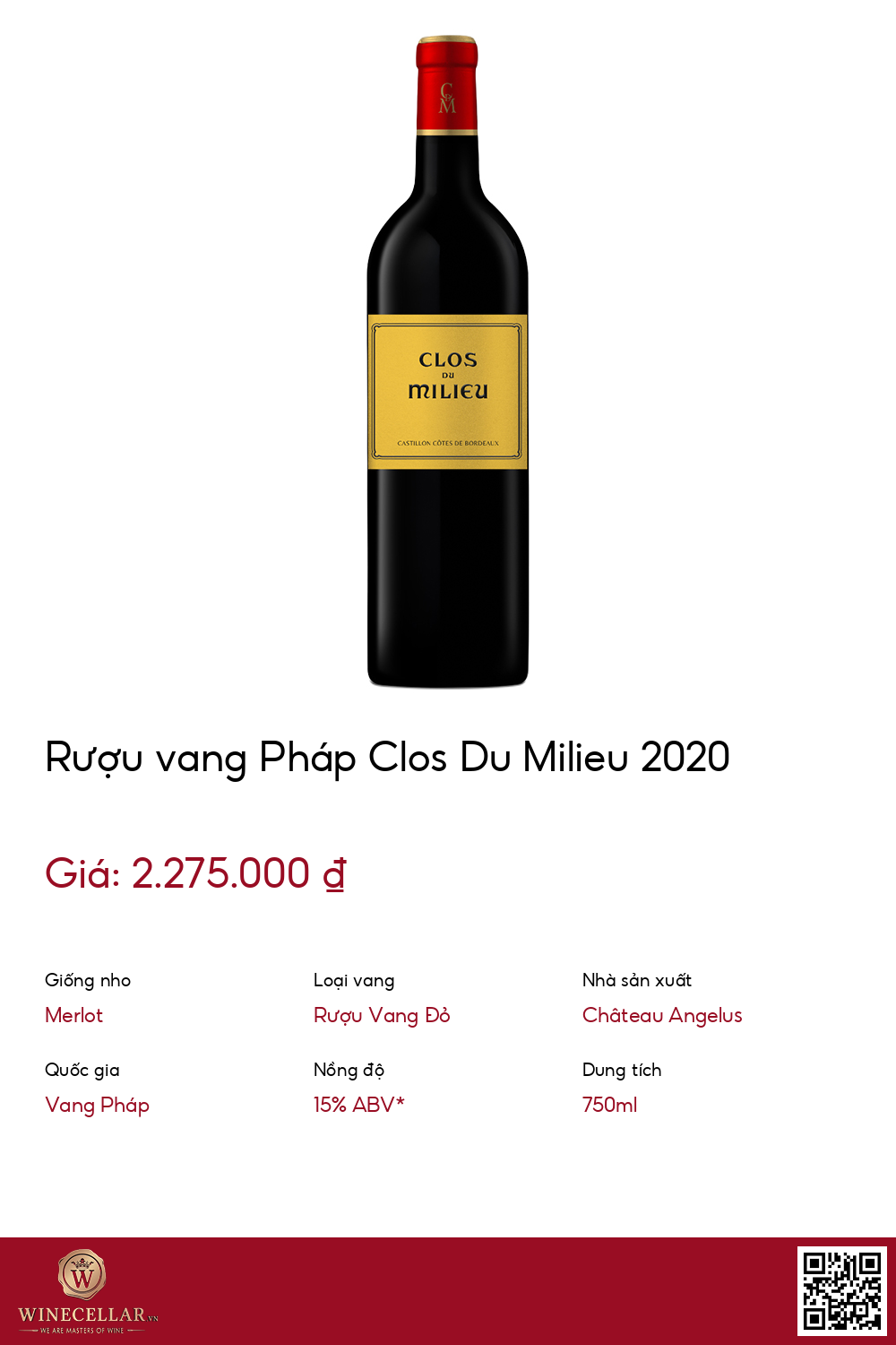 Đây là cuvée mới từ Château Angélus, được sản xuất từ thửa nho tốt nhất của họ tại Castillon. Rượu được làm hoàn toàn từ giống nho Merlot, canh tác ở sườn đồi phía Nam Castillon-la-Bataille – nơi có thổ nhưỡng đất sét, đá vôi lạnh đặc trưng. Rượu được ủ 18 tháng trong thùng gỗ sồi Pháp mới, đem lại hương vị tinh tế và cân bằng với chiều sâu hấp dẫn. Cấu trúc đầy đặn, mượt mà, để lại ấn tượng ngay từ lần thưởng thức đầu tiên.