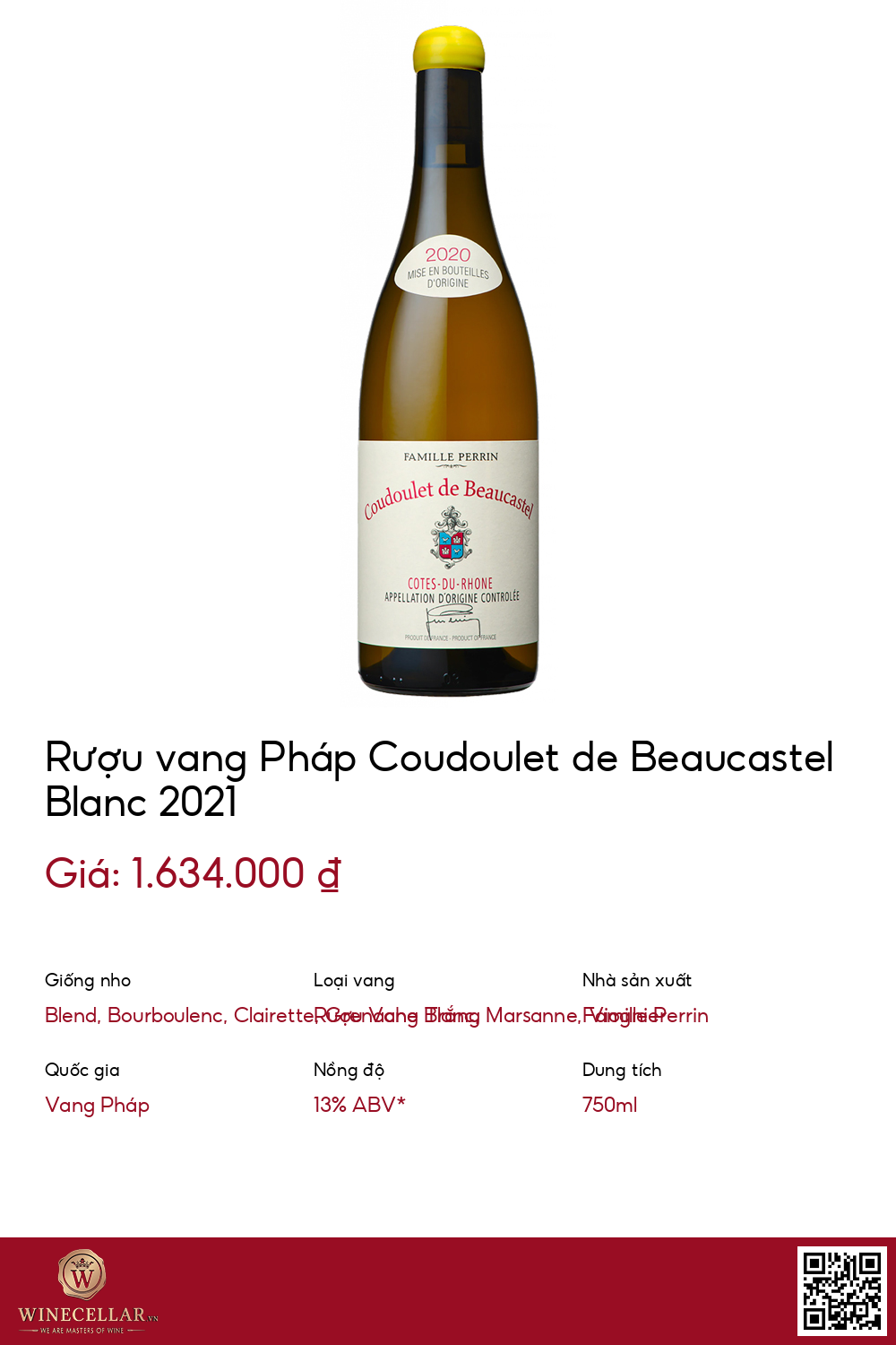 Rượu vang Pháp Coudoulet de Beaucastel Blanc 2021