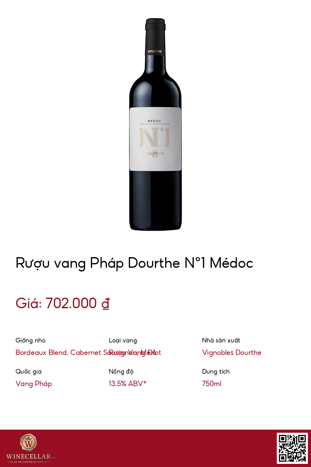 Ngày nay, rượu vang là một trong những món quà tặng được ưa chuộng hàng đầu bởi ngoại hình sang trọng, tinh tế, hương vị thơm ngon, phù hợp với mọi dịp trong cuộc sống. Nếu bạn đang phân vân lựa chọn quà tặng cho bạn bè, người thân vào những dịp đặc biệt, rượu vang đỏ Dourthe N°1 Médoc là một trong những gợi ý tuyệt vời. Một dòng rượu vang Bordeaux xuất sắc trong tầm giá sẽ là món quà mà bất cứ tín đồ rượu vang nào cũng mong muốn được sở hữu. Hãy đến với WINECELLAR.vn để được tư vấn thêm về các dòng rượu và quà tặng rượu vang phù hợp cho mọi đối tượng.